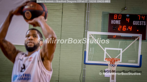 Solent Kestrels NBL Division 1 – 5 February, 2017 – Fleming Park Leisure Cent. : Jorge Ebanks (8) 2 freethrows to seal the match with just 26.4 seconds to go during the match against Bradford Dragons (Photo by NGS/MirrorBoxStudios)