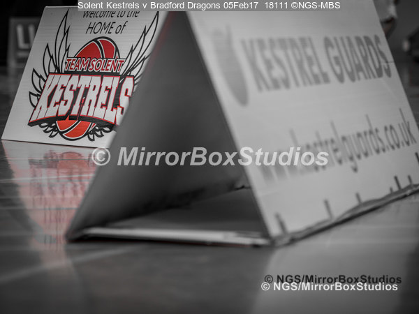 Solent Kestrels NBL Division 1 – 5 February, 2017 – Fleming Park Leisure Cent. : Signs & Sponsors during match against Bradford Dragons (Photo by NGS/MirrorBoxStudios)