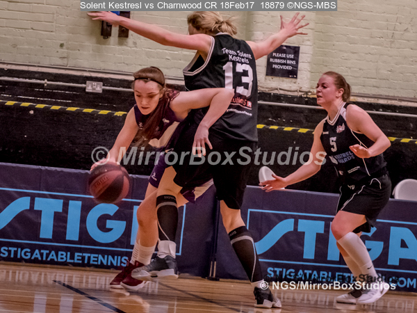 WNBL Division 1 – 18 February, 2017 – St Marys Leisure Cent. : Stevie Ellis (13) big defense during match between Solent Kestrels Women and Charnwood CR (Photo by NGS/MirrorBoxStudios)