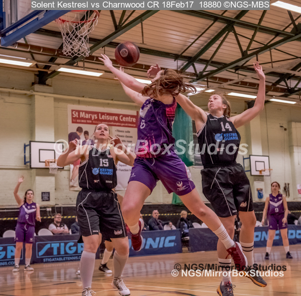 WNBL Division 1 – 18 February, 2017 – St Marys Leisure Cent. : E Maidman (8) drives to the basket during match between Solent Kestrels Women and Charnwood CR (Photo by NGS/MirrorBoxStudios)