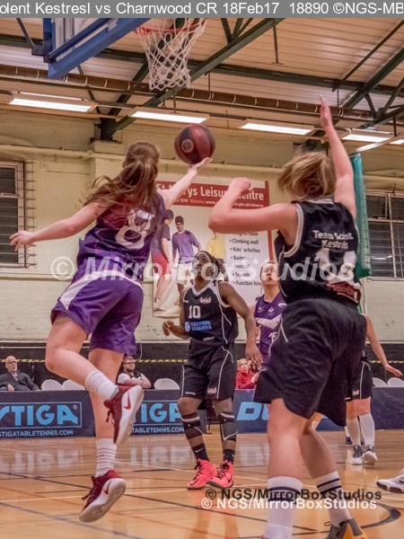 WNBL Division 1 – 18 February, 2017 – St Marys Leisure Cent. : E Maidman (8) with the layup during match between Solent Kestrels Women and Charnwood CR (Photo by NGS/MirrorBoxStudios)