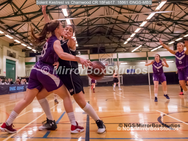 WNBL Division 1 – 18 February, 2017 – St Marys Leisure Cent. : Kalina Axentieva (6) defending during match between Solent Kestrels Women and Charnwood CR (Photo by NGS/MirrorBoxStudios)