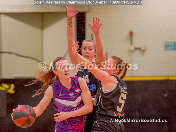 WNBL Division 1 – 18 February, 2017 – St Marys Leisure Cent. : Mel Curson (14) and Jodi Jerram (5) pressure defense during match between Solent Kestrels Women and Charnwood CR (Photo by NGS/MirrorBoxStudios)