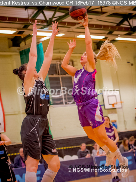 WNBL Division 1 – 18 February, 2017 – St Marys Leisure Cent. : K McDavid (15) flying to the ring during match between Solent Kestrels Women and Charnwood CR (Photo by NGS/MirrorBoxStudios)