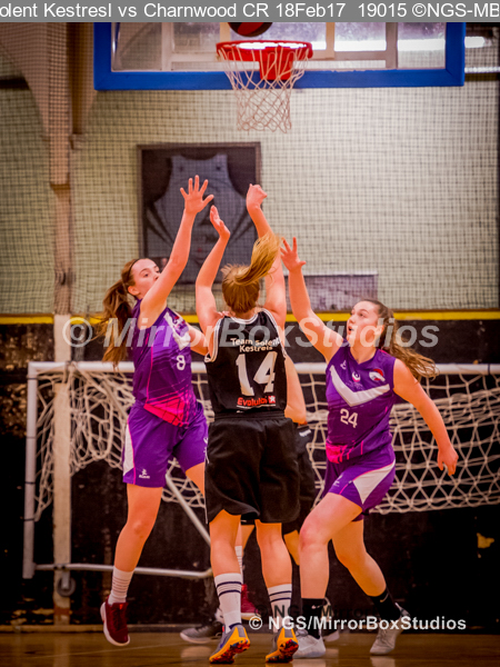 WNBL Division 1 – 18 February, 2017 – St Marys Leisure Cent. : That’s 2 points for Solent and Mel Curson (14) during match between Solent Kestrels Women and Charnwood CR (Photo by NGS/MirrorBoxStudios)