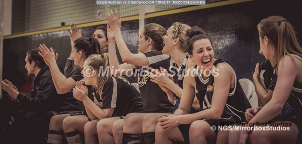 WNBL Division 1 – 18 February, 2017 – St Marys Leisure Cent. : Solent bench celebrate Kalina scoring her free throws in extra time during match between Solent Kestrels Women and Charnwood CR (Photo by NGS/MirrorBoxStudios)