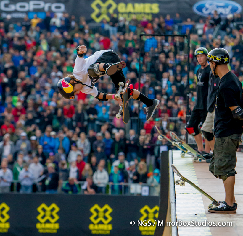 Munich, Germany – June 27, 2013 – Olympiapark: XXXXX competing in Skateboard Vert Final during X Games Munich 2013.