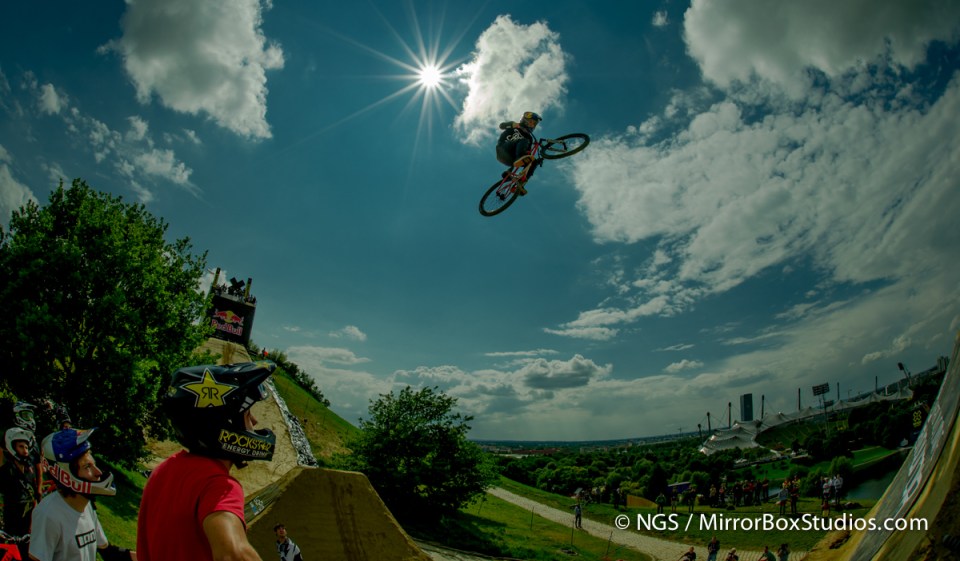 Munich, Germany – June 28, 2013 – Olympic Hill: XXXXX during Mountain Bike Slopestyle Practice at X Games Munich 2013.