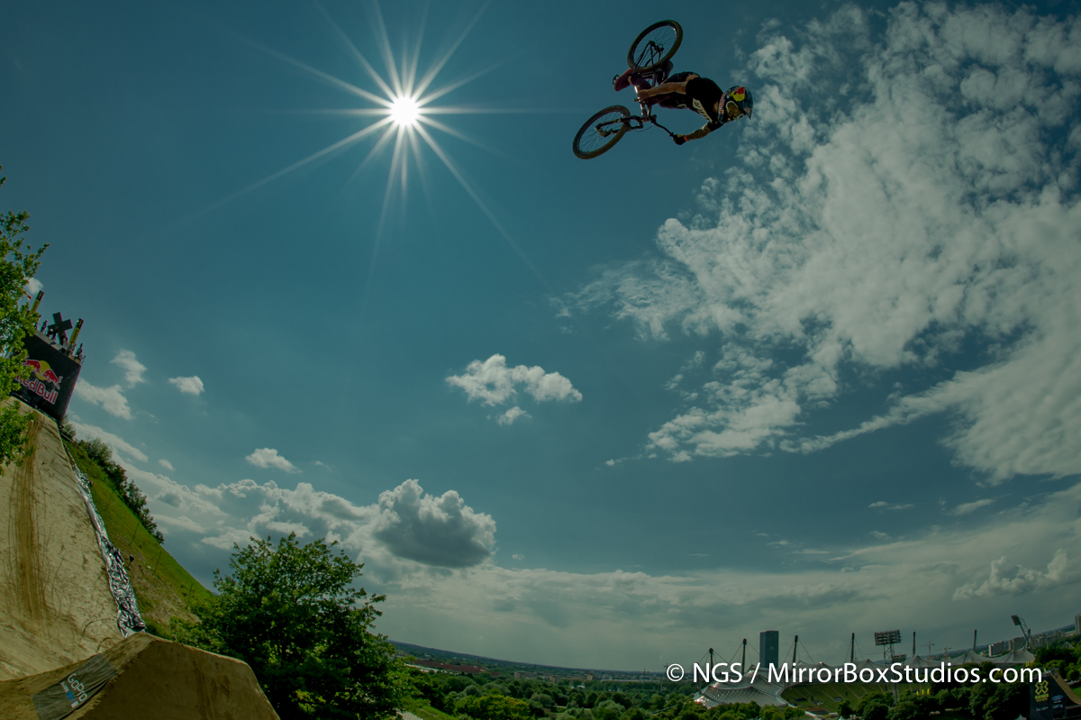 Munich, Germany – June 28, 2013 – Olympic Hill: XXXXX during Mountain Bike Slopestyle Practice at X Games Munich 2013. (Photo by Nick Guise-Smith / ESPN Images)