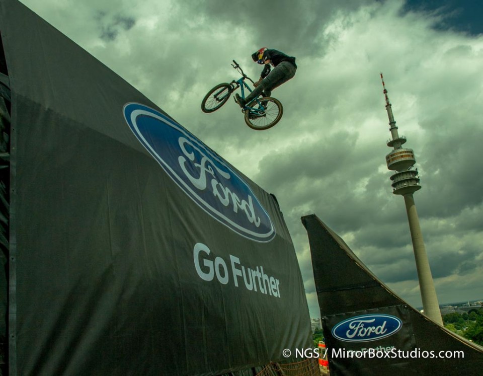 Munich, Germany – June 30, 2013 – Olympic Hill: Mountain Bike Slopestyle Practice at X Games Munich 2013.